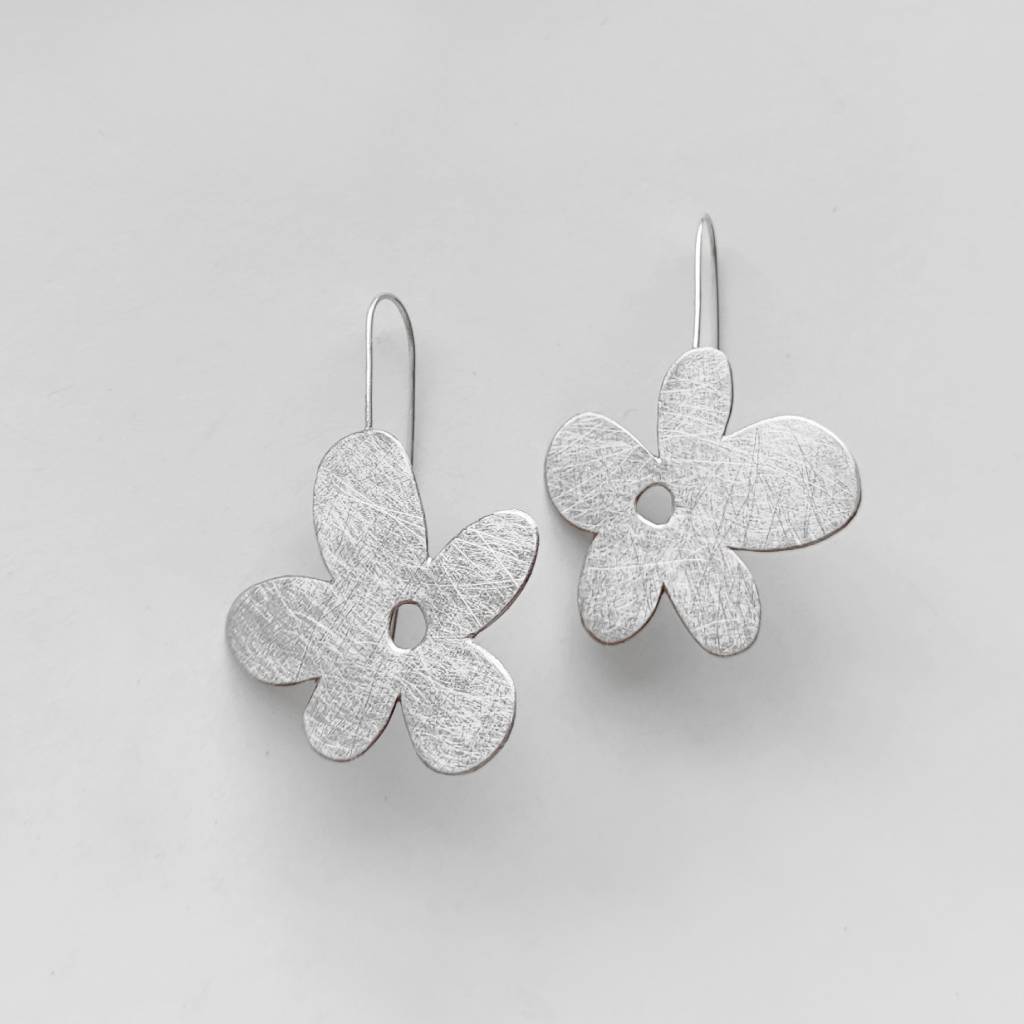 Efektowny, nowoczesny, a zarazem romantyczny dodatek. KWIAT to uroczy i delikatny wzór. Kolczyki wykonane są ze srebra, alpaka. Srebro pr. 925, alpaka- zmatowione. Długość kolczyków – ok. 5 cm szerokość 3,5 cm