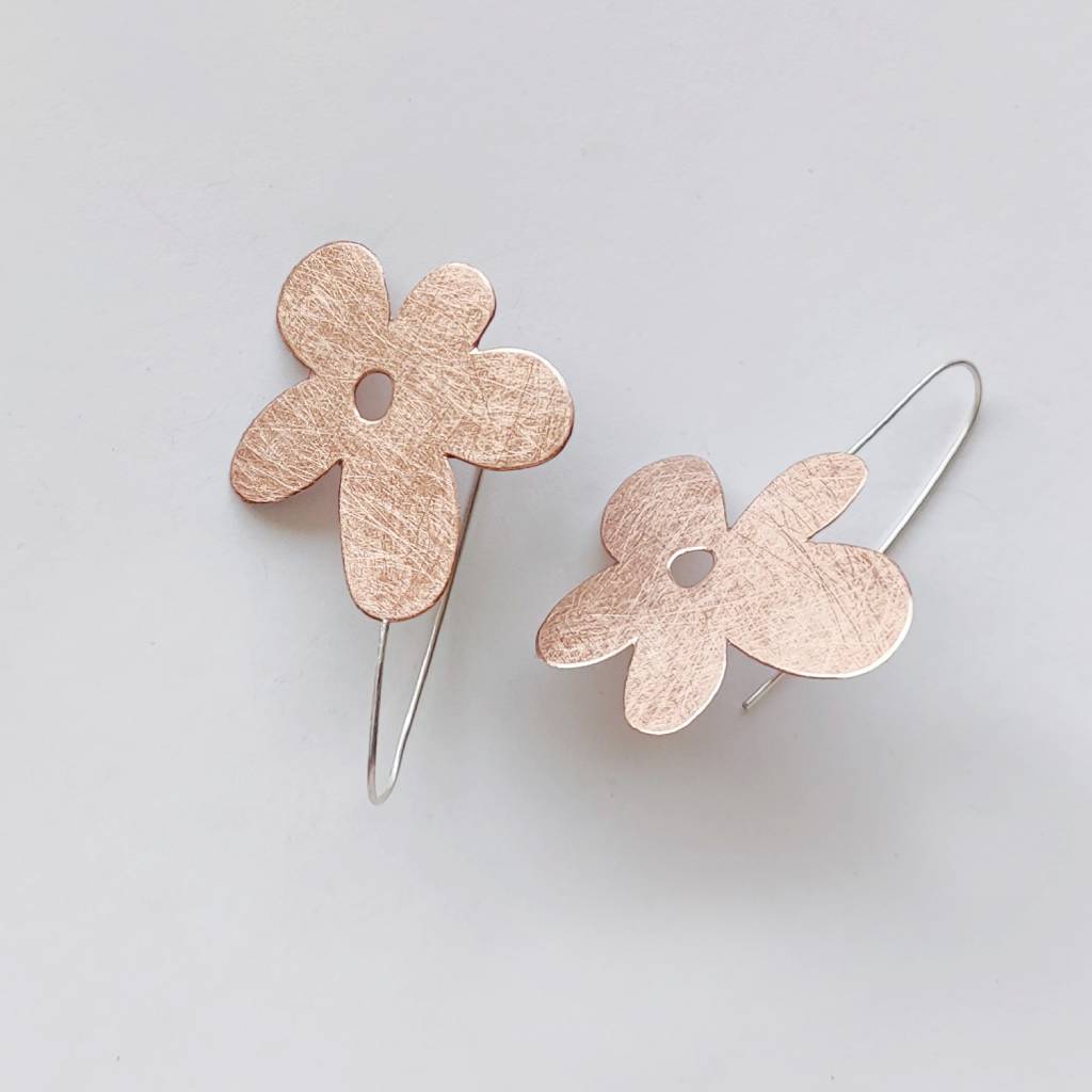 Efektowny, nowoczesny, a zarazem romantyczny dodatek. KWIAT to uroczy i delikatny wzór. Kolczyki wykonane są ze srebra, brąz Srebro, brąz – próby 0,925., zmatowione. Długość kolczyków – ok. 5 cm szerokość 3,5 cm