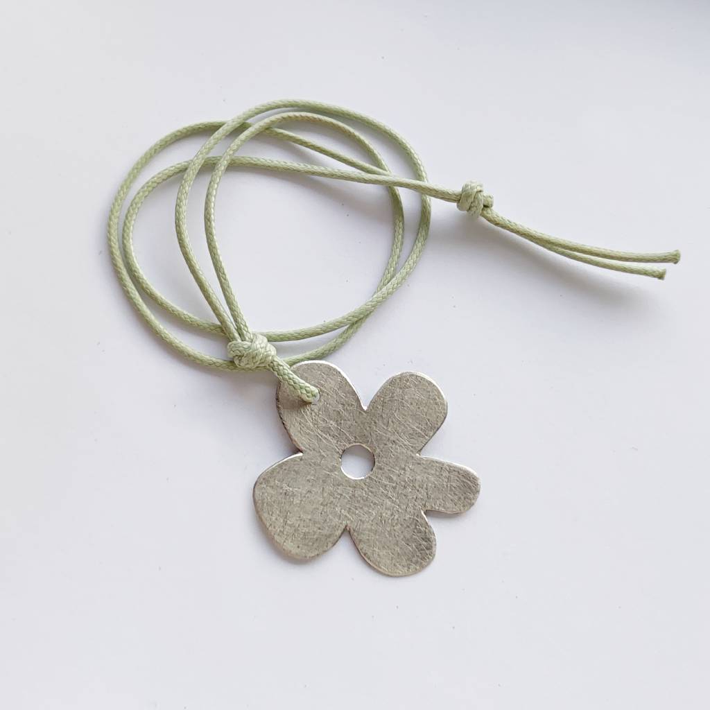 Efektowny, nowoczesny, a zarazem romantyczny dodatek. KWIAT to uroczy i delikatny wzór. W wyjątkowy sposób łączy on ażur z metalem, który przyciąga wzrok jak mało która ozdoba. Wisiorek wykonany jest z -alpaki, ozdobny sznurek. Alpaka : zmatowiona. Długość sznurka – 70 cm. Długość zawieszki – 4,5cm. Szerokość zawieszki – 4, 3cm.