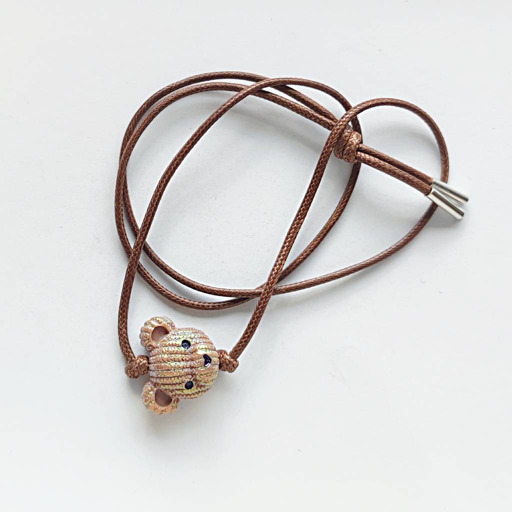 MIŚ wisiorek uroczy design. Nietuzinkowy dodatek idealnie stanowi uzupełnienie swobodnych, casualowych stylizacji. Wisiorek wykonany są z : koralik akrylowy – miś – (23X 19 mm), ozdobny sznurek, srebro pr. 925. Ten niebanalny drobiazg na pewno wywoła uśmiech na Twojej twarzy.