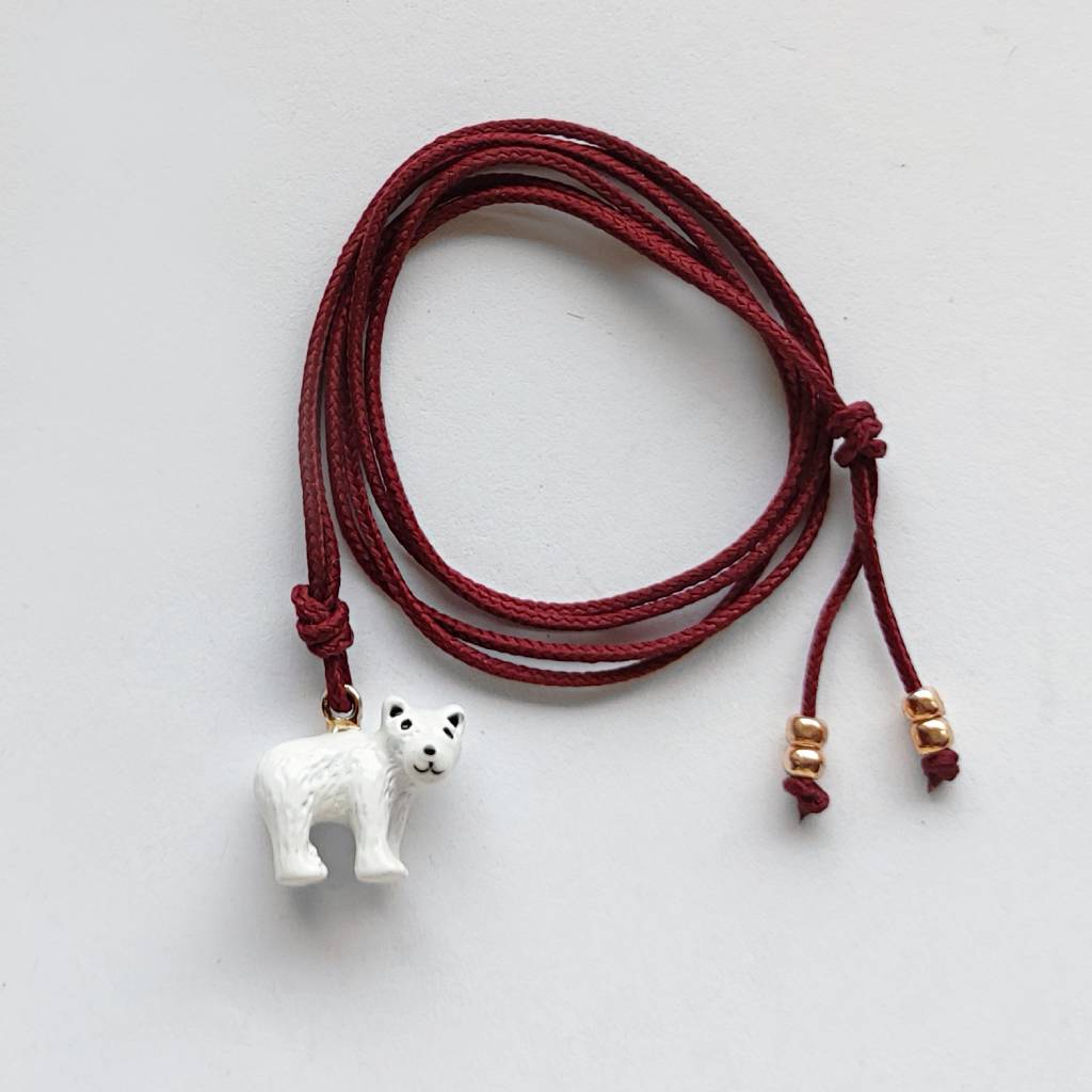 MIŚ wisiorek uroczy design. Nietuzinkowy dodatek idealnie stanowi uzupełnienie swobodnych, casualowych stylizacji. Wisiorek wykonany są z : emaliowana zawieszka- miś – (16 X 14 X 7 mm), ozdobny sznurek, szklane koraliki. Ten niebanalny drobiazg na pewno wywoła uśmiech na Twojej twarzy.