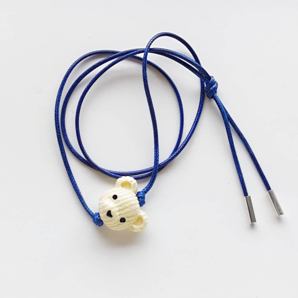 MIŚ wisiorek uroczy design. Nietuzinkowy dodatek idealnie stanowi uzupełnienie swobodnych, casualowych stylizacji. Wisiorek wykonany są z : koralik akrylowy – miś – (23X 19 mm), ozdobny sznurek, srebro pr. 925. Ten niebanalny drobiazg na pewno wywoła uśmiech na Twojej twarzy.