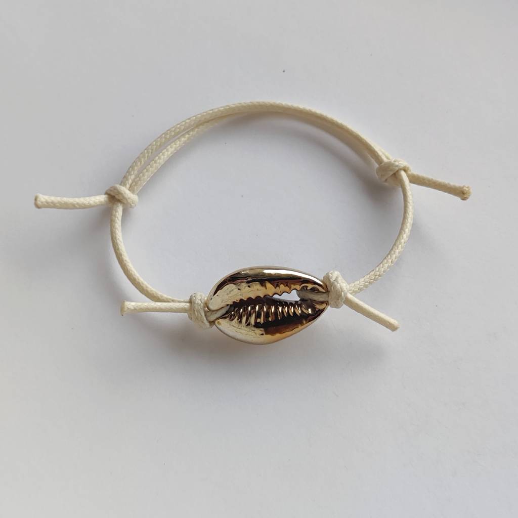 MUSZLE – zabawny dodatek. Ciekawy dodatek przykuwają uwagę i zaskakuje wzornictwem. Tak bransoletka sprawi, że każda stylizacja nabierze niepowtarzalnego, fantazyjnego charakteru. Bransoletka wykonana jest z Muszelki Kauri cięte platerowane metalik 20mm , ozdobny sznurek.