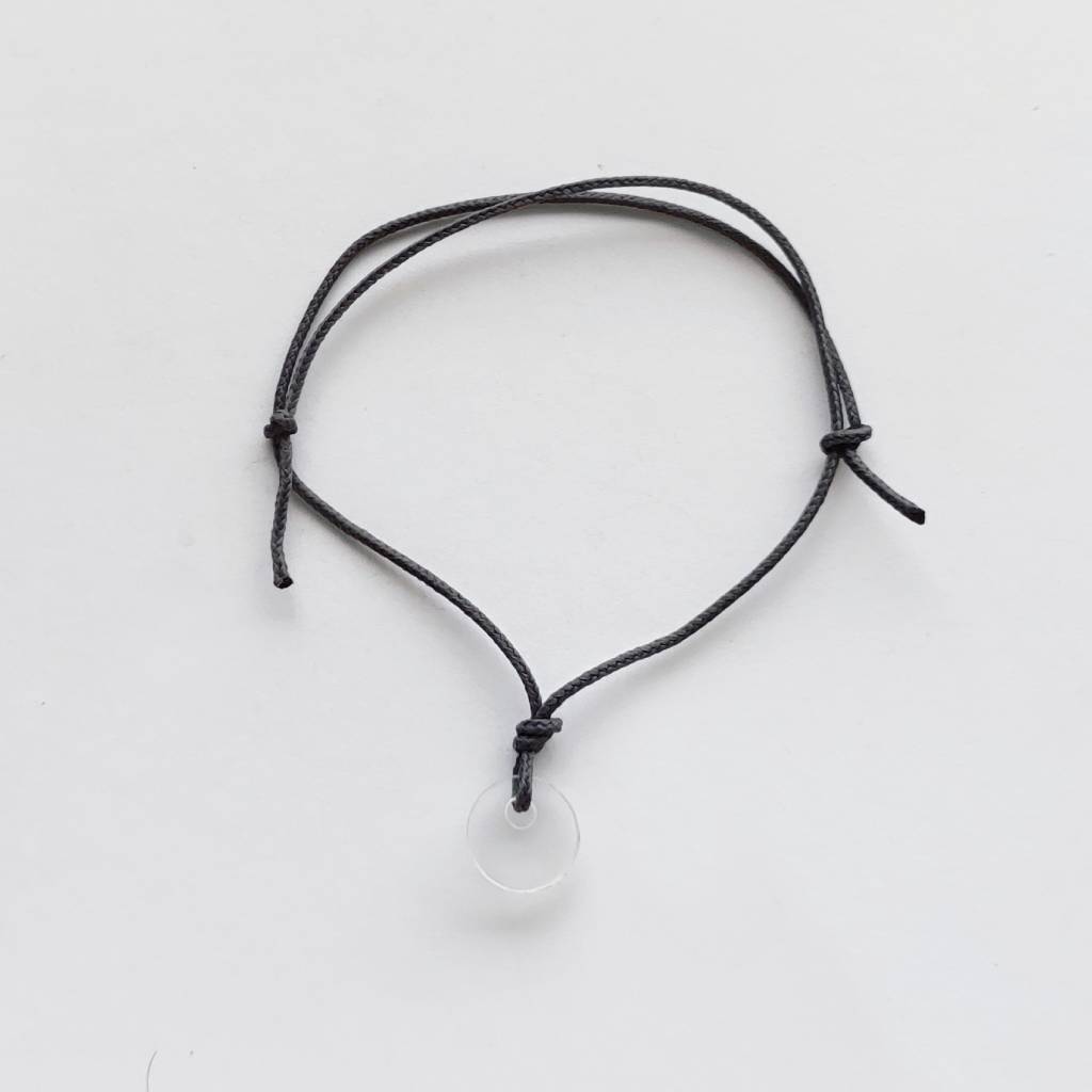 OKRAG bransoletka – uroczy dodatek . Idealna dla kobiet które ceniącą ładną oraz oryginalna biżuterię. Bransoletka wykonana jest z tworzywo sztuczne, ozdobny sznurek. .średnica zawieszki – ok. o,8 cm.