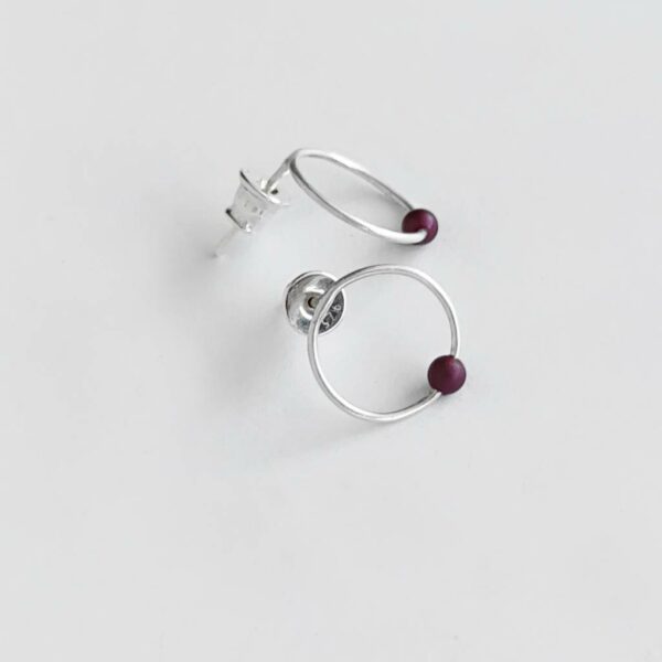 Oryginalność i prostota. OKRĄG – kształt doskonały. Kolekcję cechuje elegancja i prostota jak również ekstrawagancja i indywidualizm. Kolczyki na sztyftach wykonane są z – srebro, Swarovski perła 0,3 cm. Srebro – zmatowione. Szerokość 1,5 cm.
