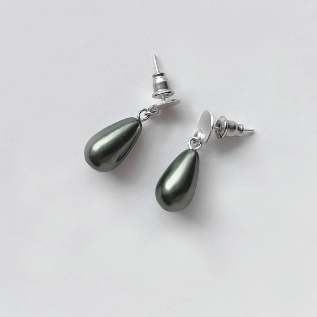 Oryginalność i prostota. OKRĄG – kształt doskonały. Kolekcję cechuje elegancja i prostota jak również ekstrawagancja i indywidualizm. Kolczyki na sztyftach wykonane są ze srebro, perła seashell kropla zielona 14×9 mm. Srebro – próby 0,925, zmatowione. Długość kolczyków – ok. 2, 7cm.