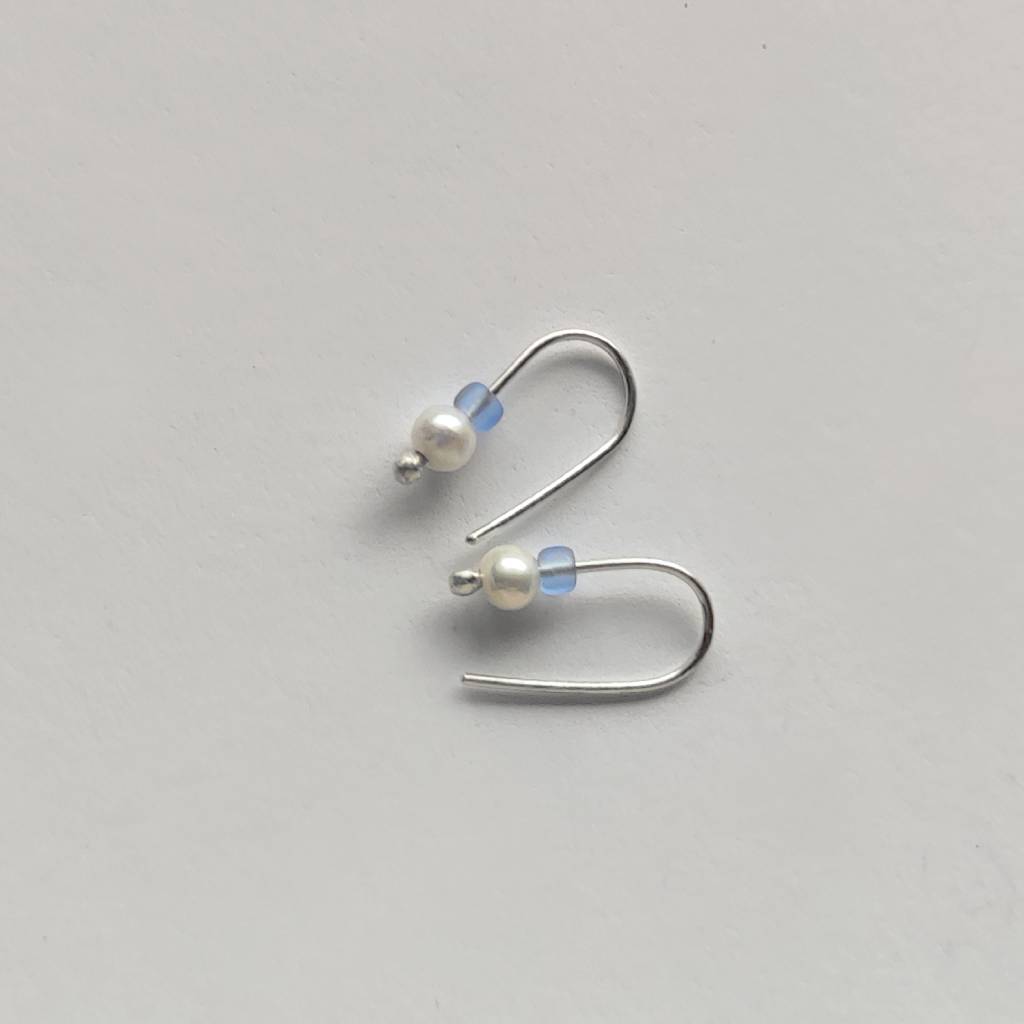 Oryginalność i prostota. OKRĄG – kształt doskonały. Kolekcję cechuje elegancja i prostota jak również ekstrawagancja i indywidualizm. Kolczyki wykonane są z – srebro, Perła słodkowodna srebrna oponka 4 mm, koraliki szklane. Srebro – zmatowione. Długość ok. 1,7 cm.