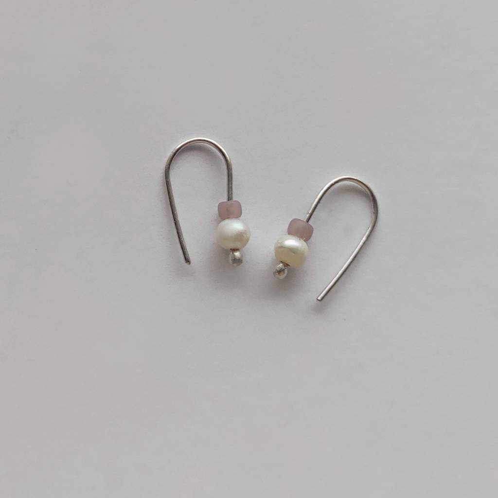 Oryginalność i prostota. OKRĄG – kształt doskonały. Kolekcję cechuje elegancja i prostota jak również ekstrawagancja i indywidualizm. Kolczyki wykonane są z – srebro, Perła słodkowodna srebrna oponka 4 mm, koraliki szklane. Srebro – zmatowione. Długość ok. 1,7 cm.