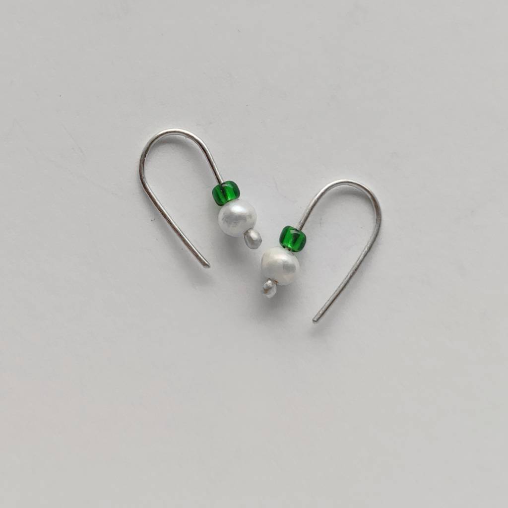 Oryginalność i prostota. OKRĄG – kształt doskonały. Kolekcję cechuje elegancja i prostota jak również ekstrawagancja i indywidualizm. Kolczyki wykonane są z – srebro, Perła słodkowodna srebrna oponka 4 mm, koraliki szklane. Srebro – zmatowione. Długość ok. 1,7 cm.