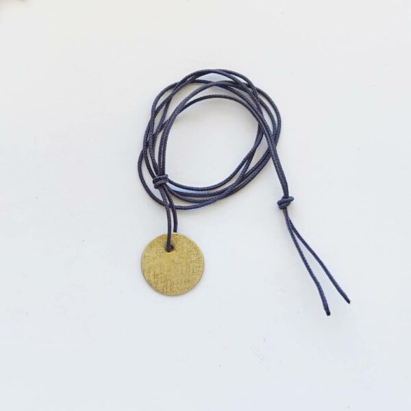Oryginalność i prostota. Kolekcję cechuje elegancja i prostota jak również ekstrawagancja i indywidualizm. Wisiorek wykonany z: mosiądz ozdobny sznurek. Średnica zawieszki 1,8 cm. Długość sznurka- ok. 60 cm