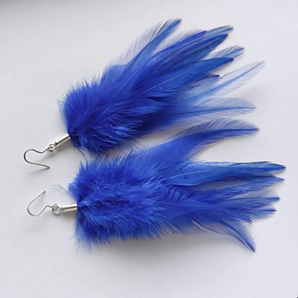 PIÓRKO – stylowy dodatek. Połączenie lekkości piórka i trwałości metalu. Metal niezwykle kontrastuje z naturalnym barwionym puchem. Kolczyki wykonane są z srebro, naturalnie barwione pióra. Srebro – wypolerowane. Bigle otwarte – srebro pr.925. Długość z biglami – 10 cm.