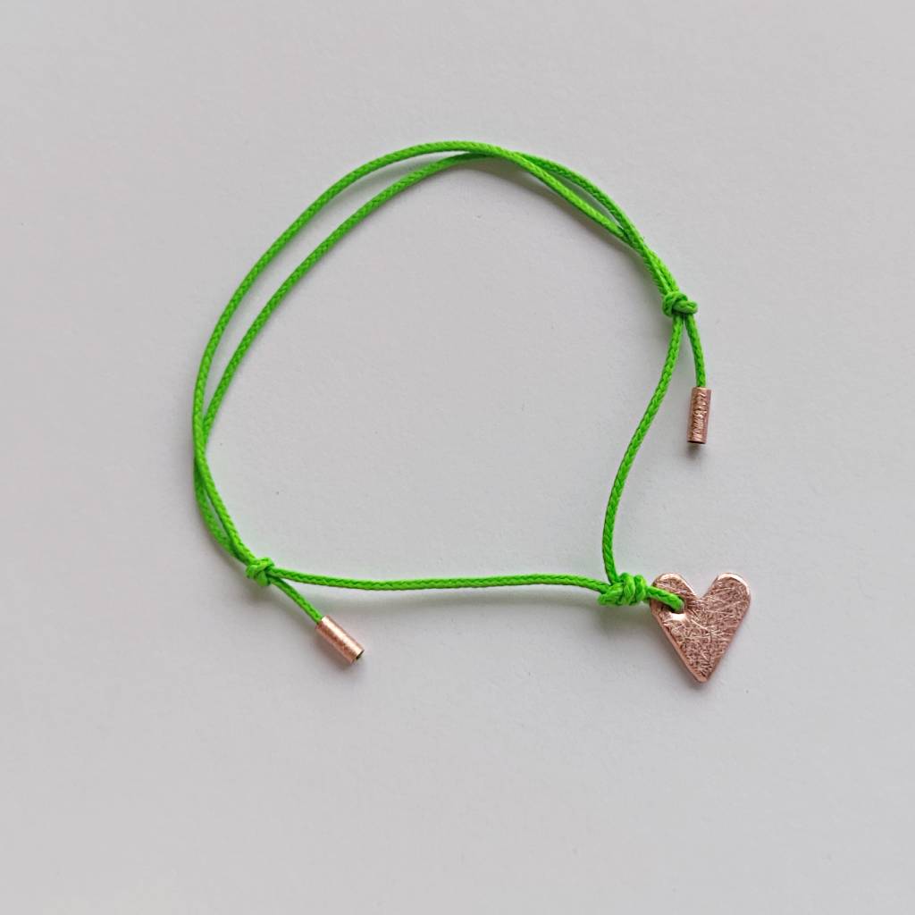 Serduszko bransoletka – uroczy dodatek . Idealna dla kobiet ceniące ładną oraz oryginalna biżuterii. Bransoletka wykonana jest z: miedź, ozdobny sznurek. Miedź – zmatowiony. Długość zawieszki – ok 1 cm. Szerokość zawieszki – 1cm