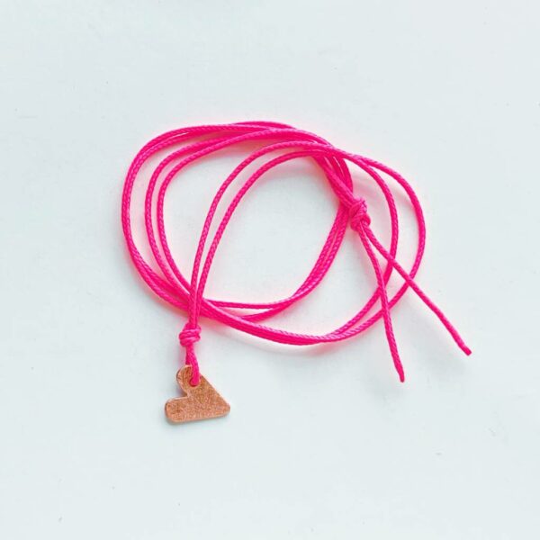 Serduszko wisiorek – uroczy dodatek. Wisiorek wykonany jest z miedzi, ozdobny sznurek. Miedź zmatowiona. Długość rzemienia – ok. 60cm. Długość zawieszki – ok. 1 cm. Szerokość zawieszki – ok. 1 cm.