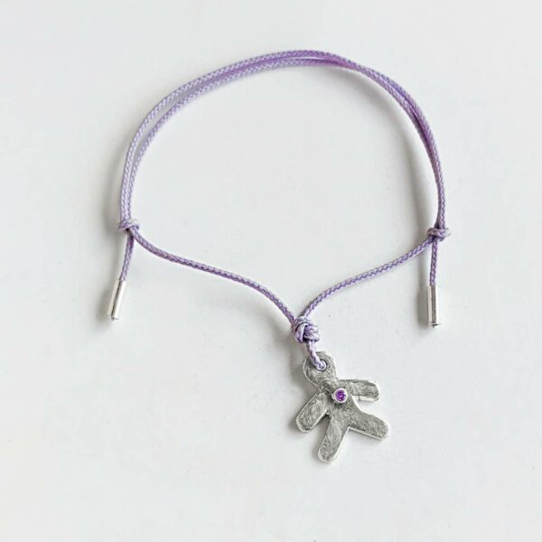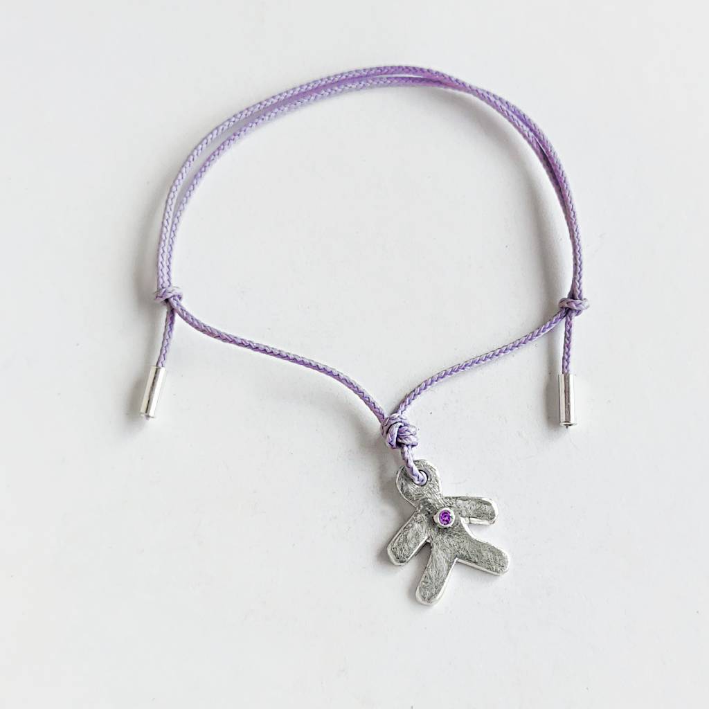 SŁODKI PAMPEREK bransoletka- zabawny dodatek. Ciekawy dodatek przykuwają uwagę i zaskakuje wzornictwem. Taka bransoletka sprawi, że każda stylizacja nabierze niepowtarzalnego, fantazyjnego charakteru. Bransoletka wykonana jest z: Srebro, ametyst, ozdobny sznurek. Srebro pr. 925sztuczne – zmatowione. Długość zawieszki 1,3 cm. Szeroko – 1,7 cm.